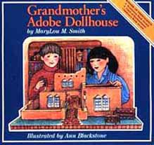 The dollhouse is constructed and decorated in the traditional style of the American Southwest.